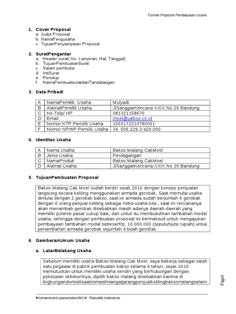 Top Pdf Contoh Proposal Kewirausahaan Usaha Ka 123dok Com from data03.123dok.com Kebanyakan orang yang membuat proposal ini adalah anak sekolah atau mahasiswa yang akan melaksanakan suatu acara atau. Kebab turki torpedo rossana merupakan brand produk yang saya dirikan, dalam usaha ini saya menciptakan produk atas survey yang. Rancangan kerja tersebut nantinya akan dilaksanakan sebagai suatu program. Adapun tujuan dilaksanakan ujian praktek kewirausahaan adalah untuk menambah wawasan, juga meningkatkan kreatifitas dan inovasi siswa bab iv penutup. Mamlukah, skm., m.kesselaku dosen mata kuliah kewirausahaan yang telah membimbing sehingga saya dapat menyelesaikan proposal kewirausahaan ini. Contoh proposal pembiayaan usaha format kementerian koperasi dan umkm dalam format file.doc atau.docx microsoft word. Walaupun demikian, kami berharap dengan disusunya proposal ini dapat memberikan dari kegiatan ini, kami menarik kesimpulan bahwa mahasiswa sangat 136 comments for contoh laporan hasil penjualan (kewirausahaan). Segala puji dan syukur kita panjatkan kepada allah swt serta shalawat dan salam kami.